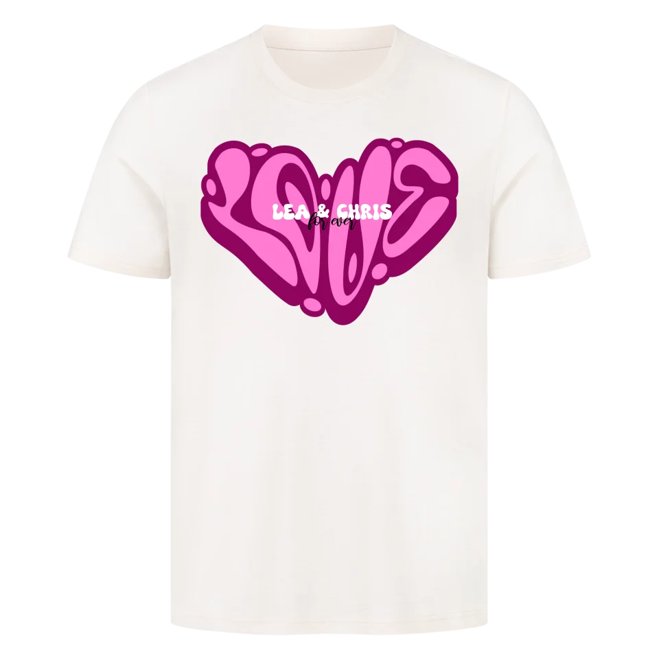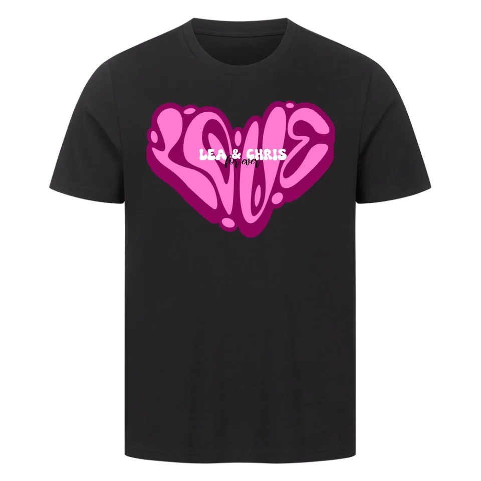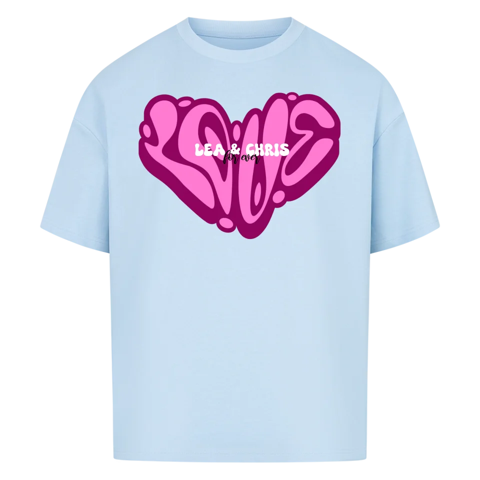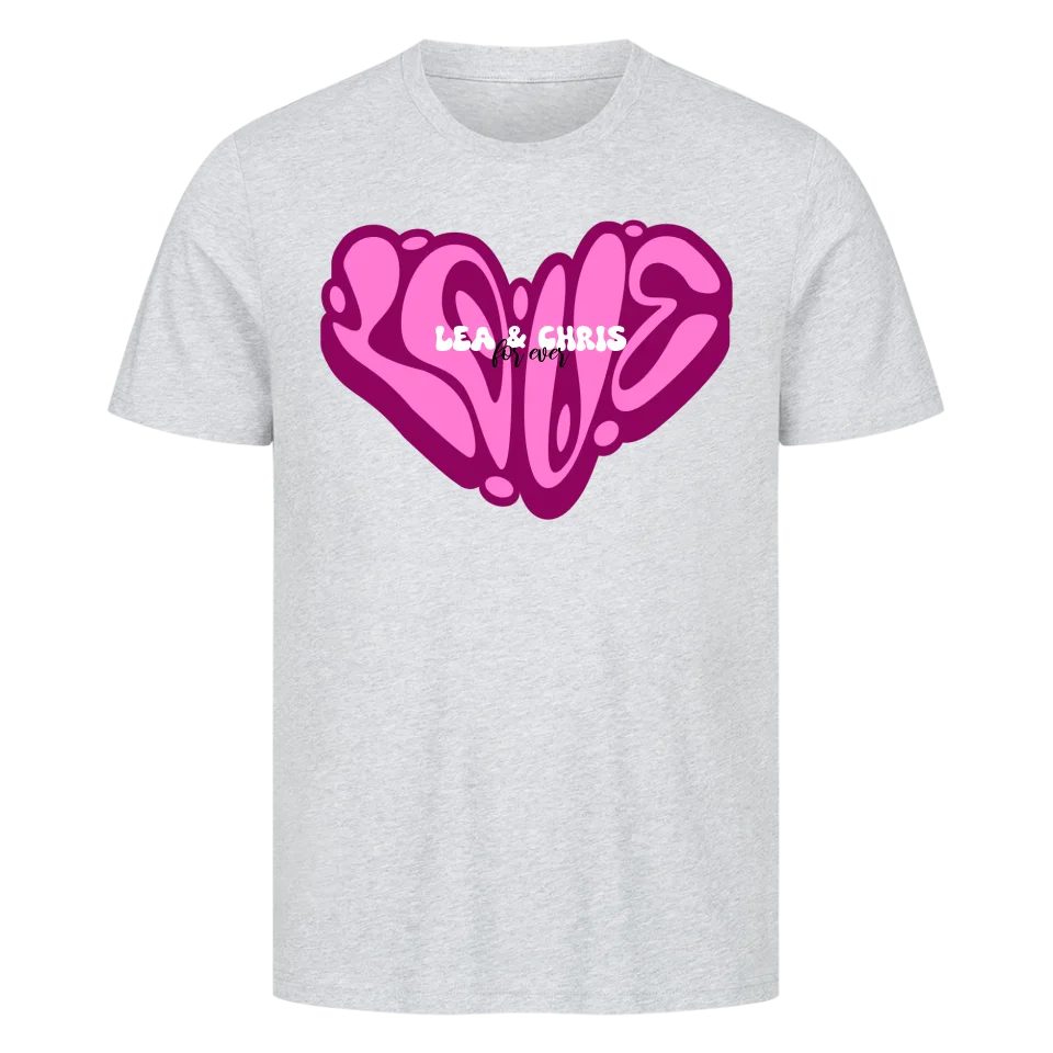 Dieses auffällige Shirt bringt 90s-Graffiti-Vibes direkt auf Stoff – perfekt für Verliebte, beste Freund:innen oder als kreatives Geschenk. Das ikonische LOVE-Herz in Pink zieht alle Blicke auf sich, mittendrin steht euer Name – personalisiert und einzigartig.
