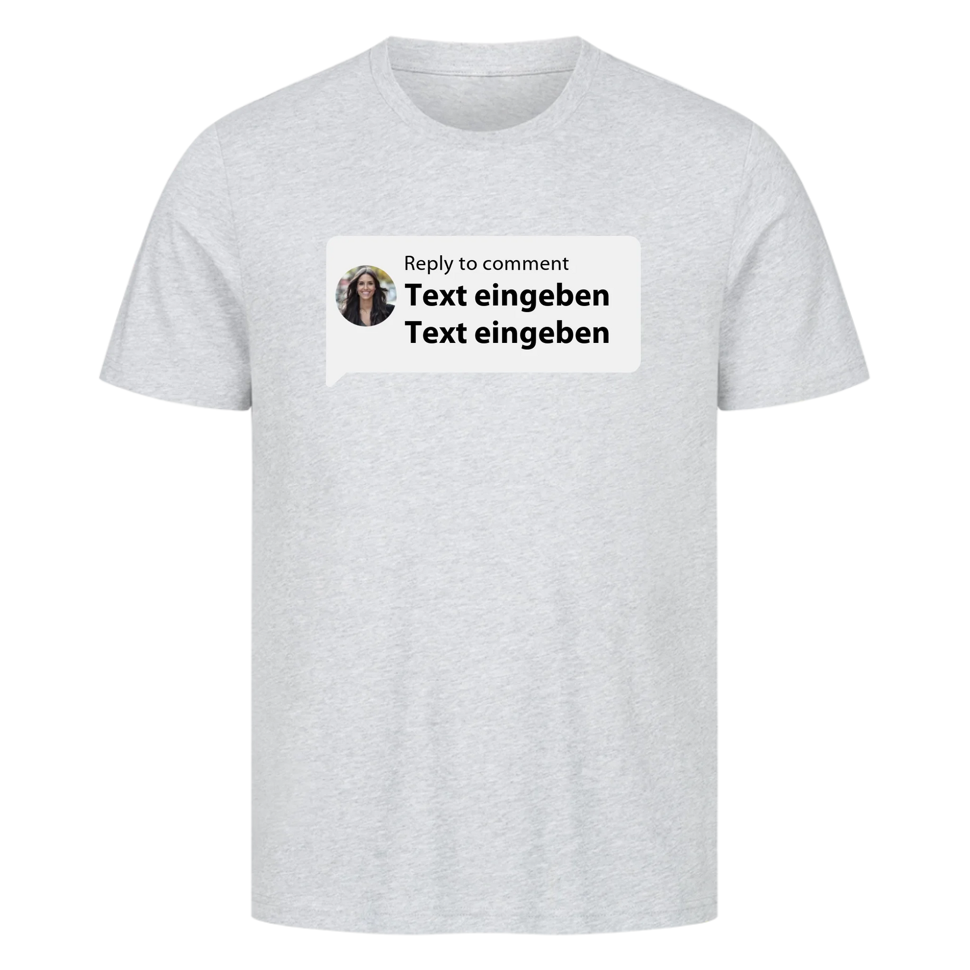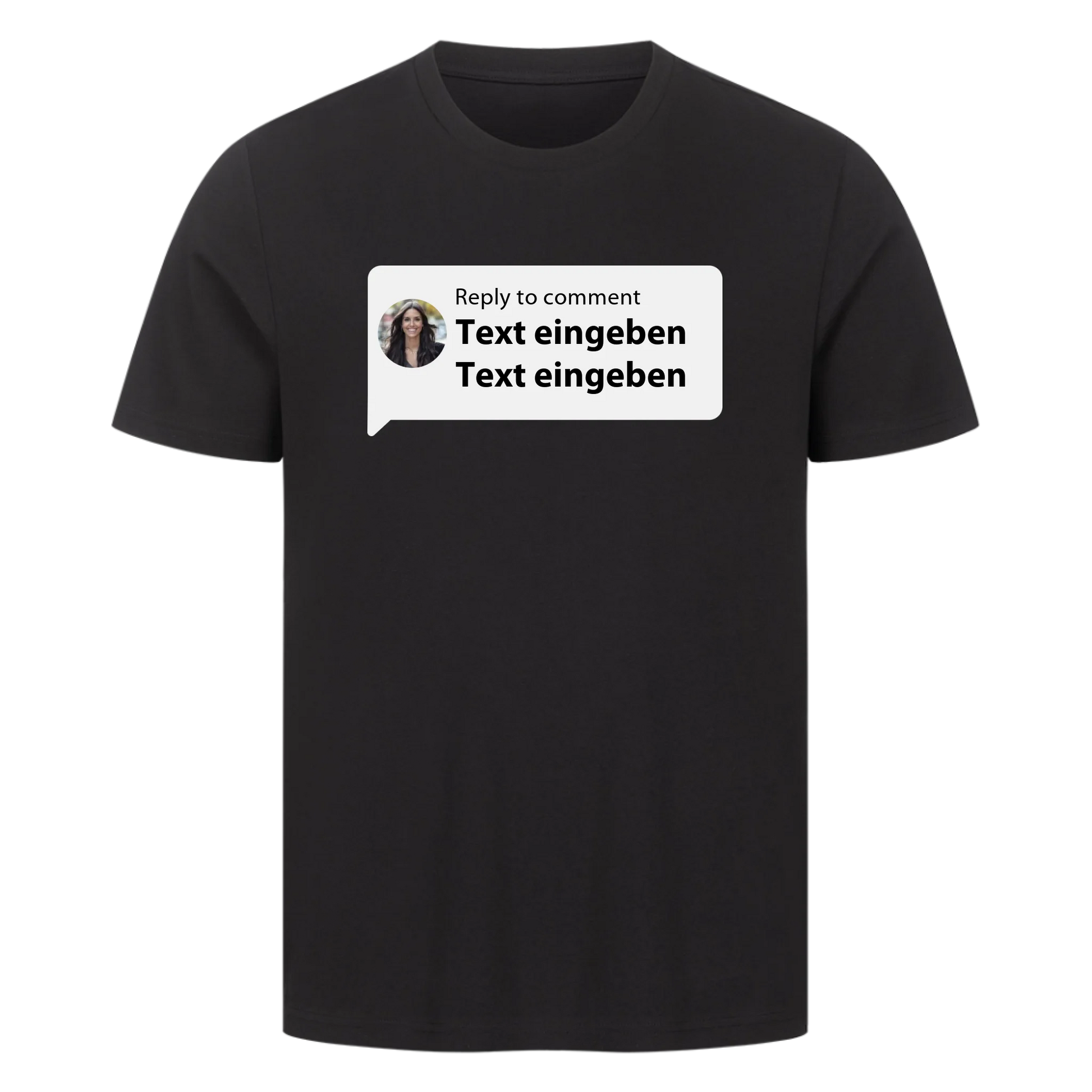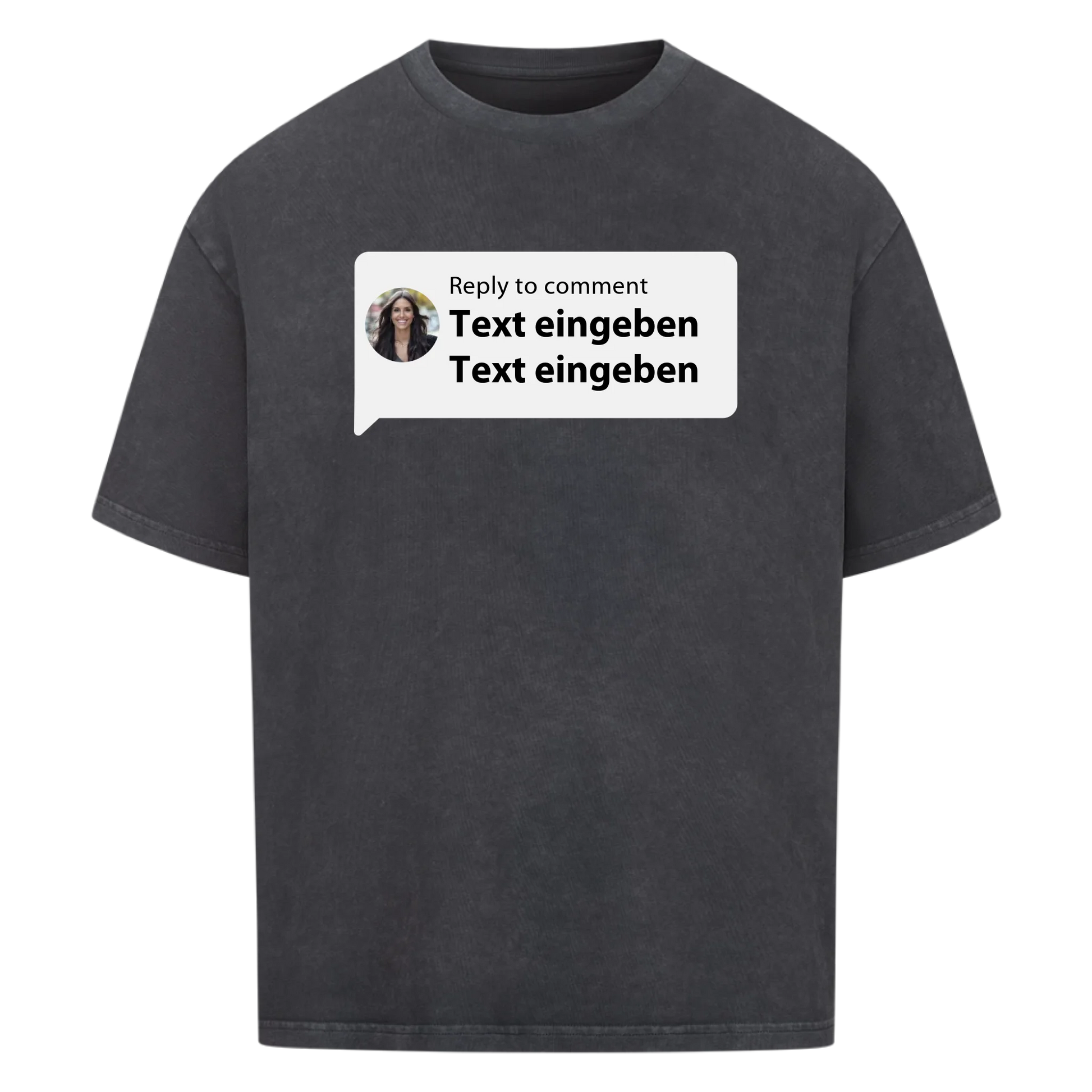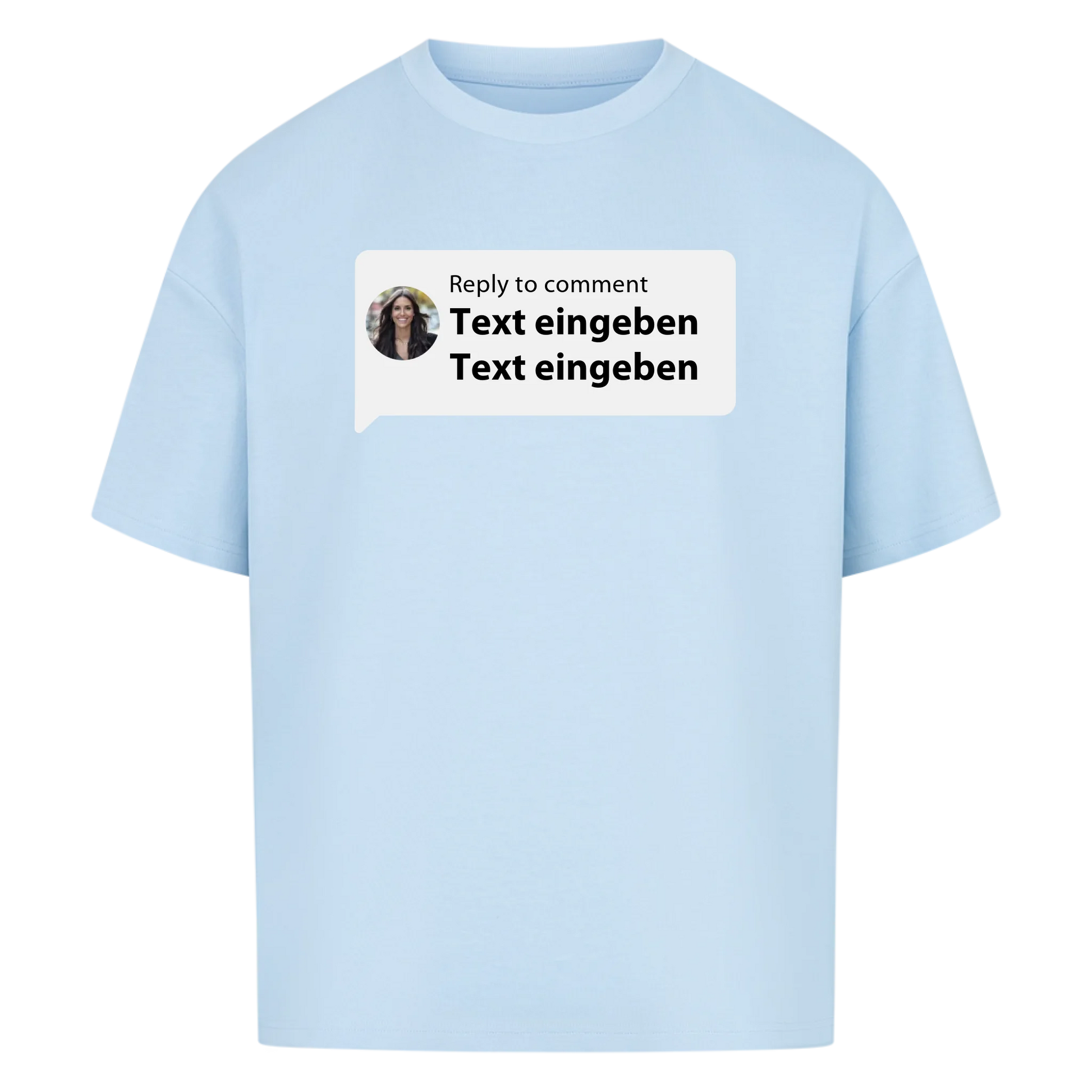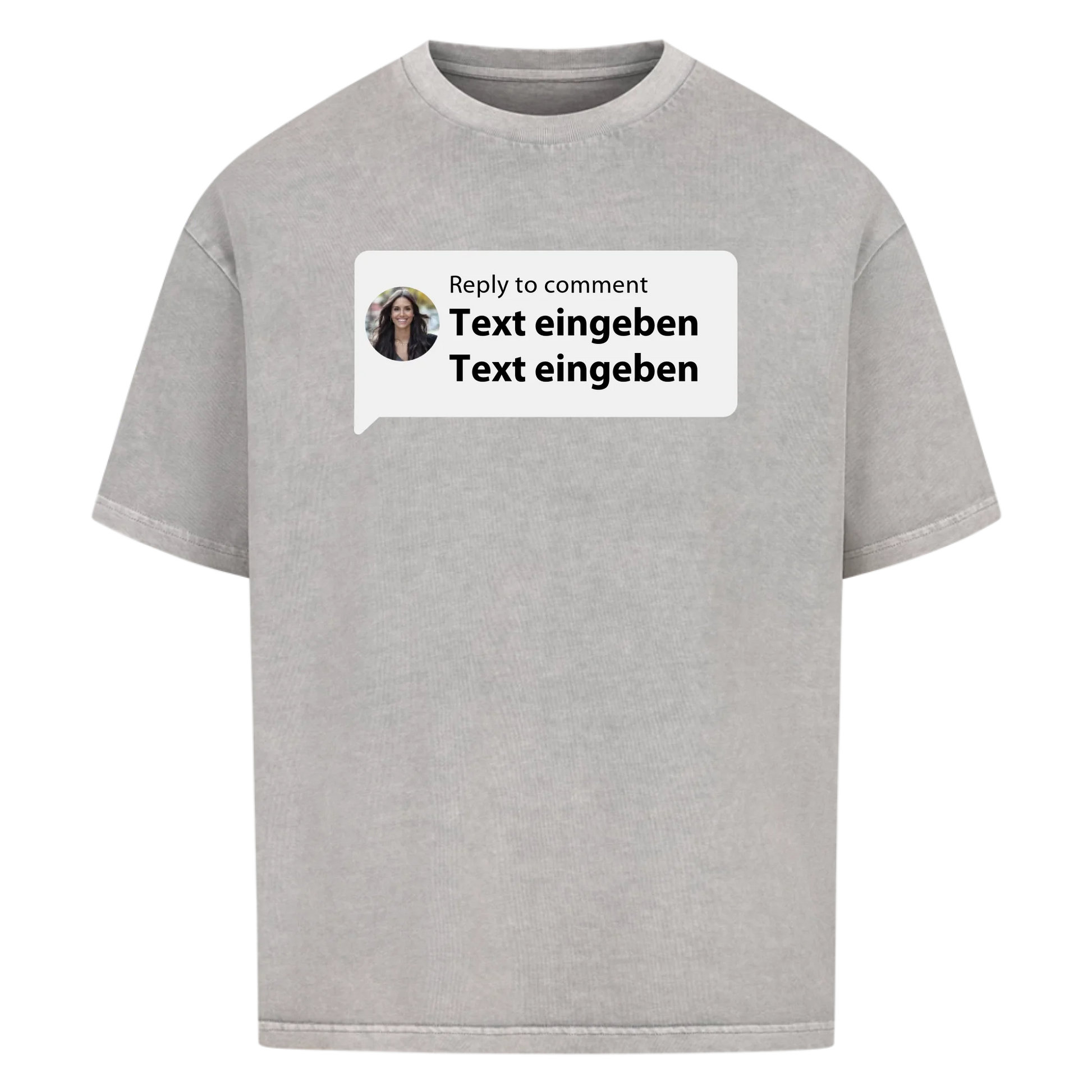 Das „Reply to comment“-Shirt ist die perfekte Leinwand für persönliche Botschaften, lustige Inside-Jokes oder kleine Liebeserklärungen – im Look einer Social-Media-Antwort.