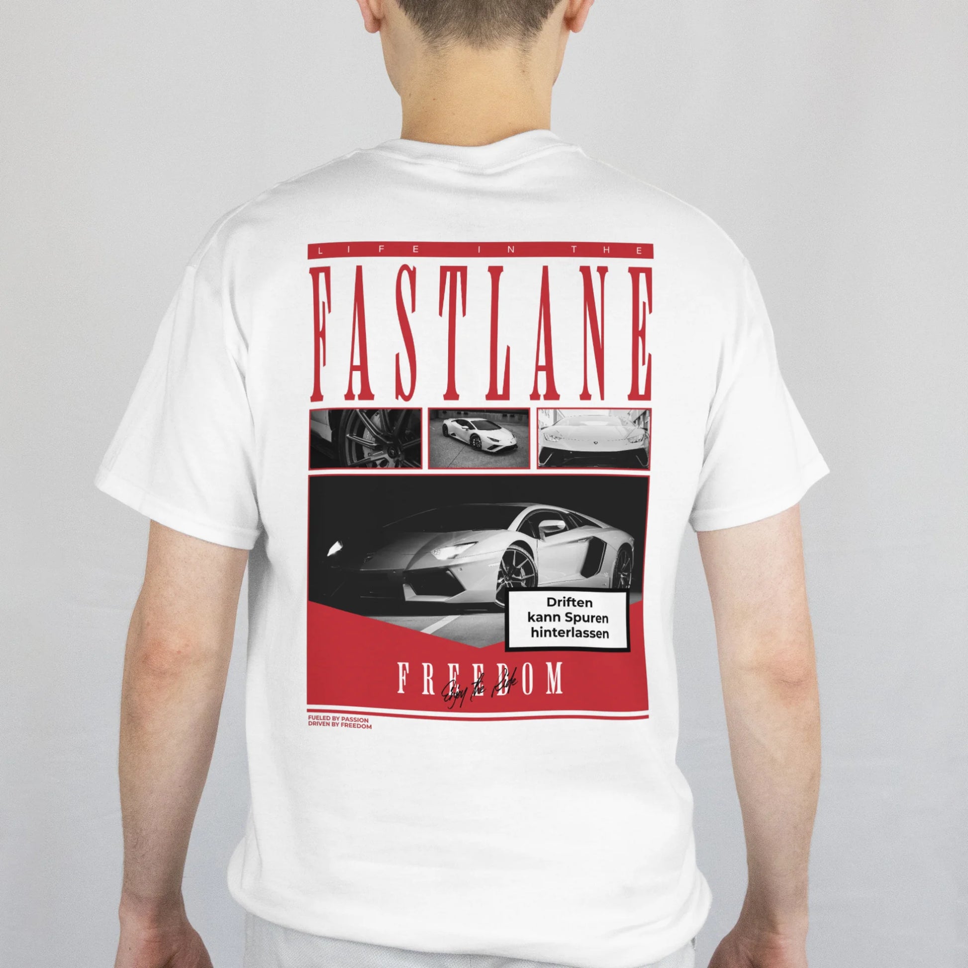 Mach deine Leidenschaft sichtbar – mit unserem exklusiven Life in the Fast Lane Shirt. Dein Design, deine Fotos, dein Style: Lade bis zu vier Bilder hoch, die automatisch in Schwarz-Weiß konvertiert werden, und personalisiere dein einzigartiges Motiv. „Driften kann Spuren hinterlassen.“