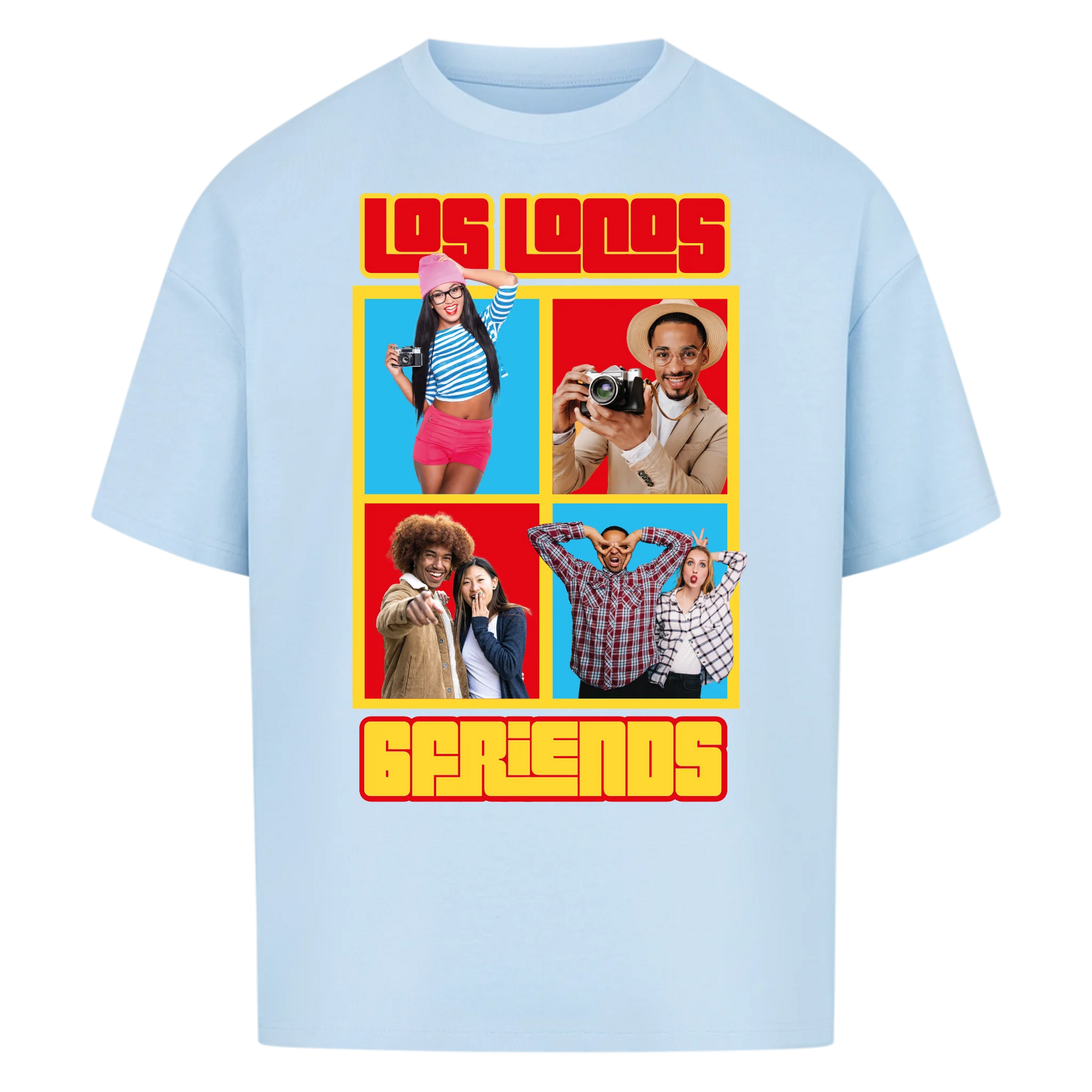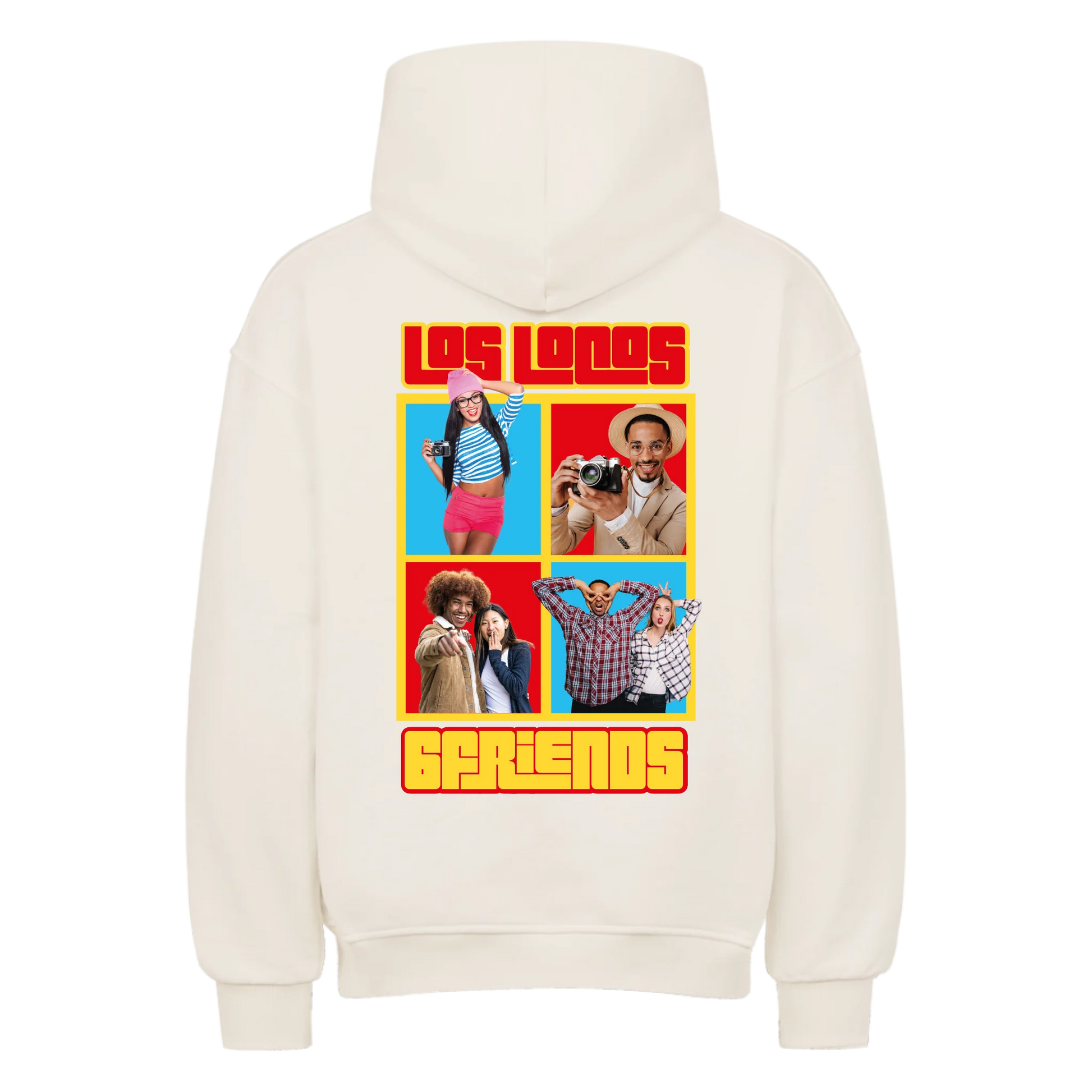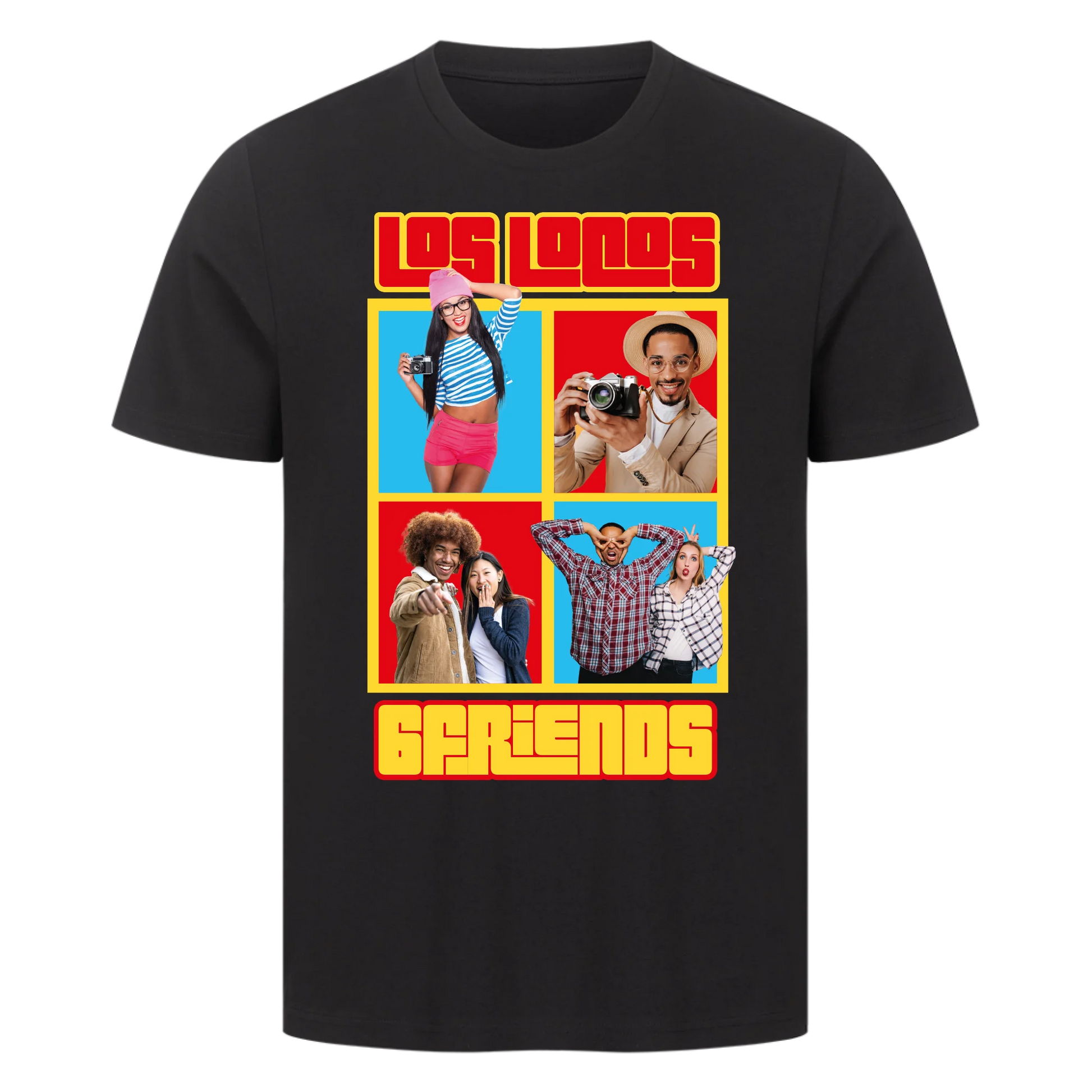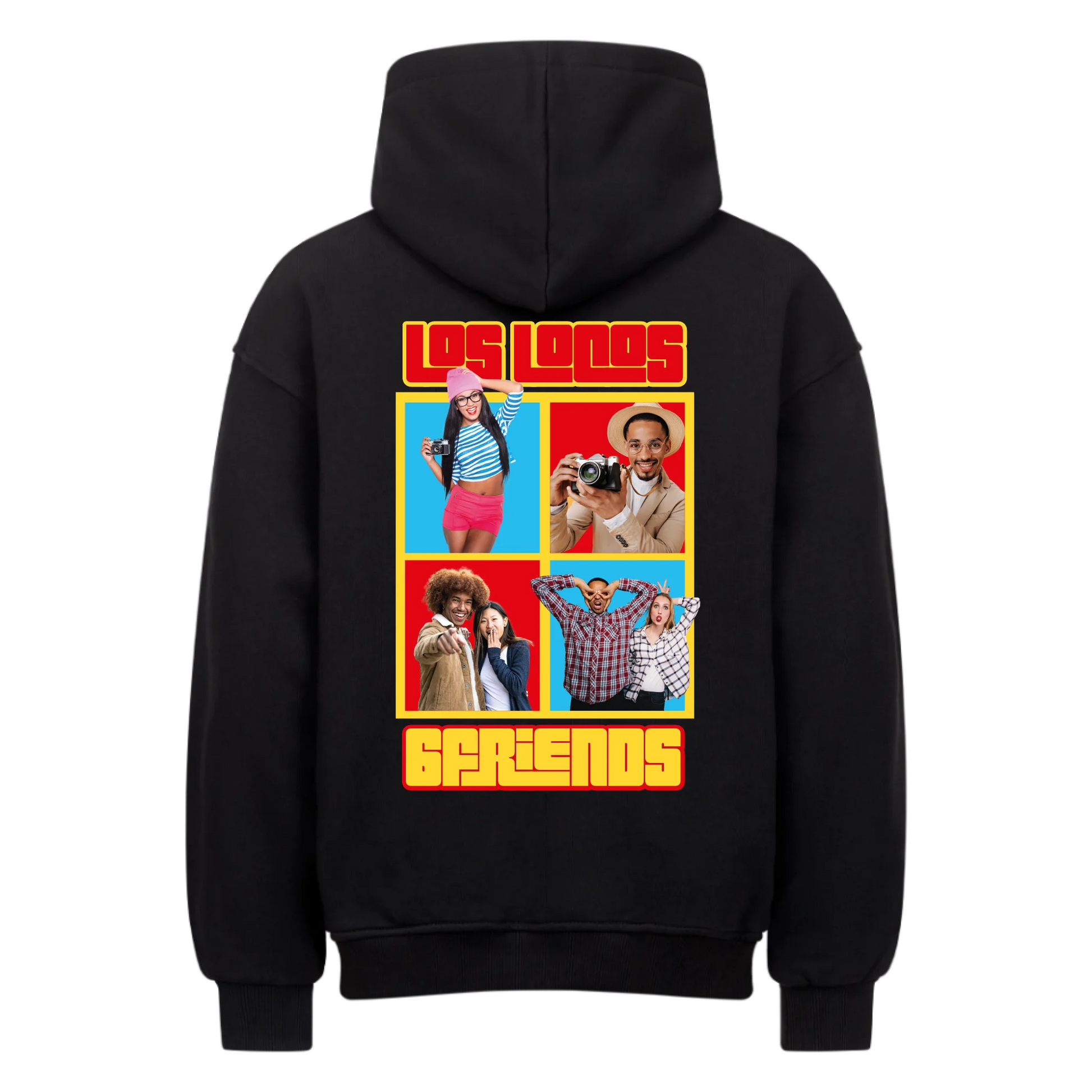 Mit diesem farbenfrohen Collage-Design verewigt ihr eure besten Momente: 4 Fotos und zwei frei wählbare Texte machen dieses Shirt oder Hoodie zu eurem ultimativen Crew-Merch.