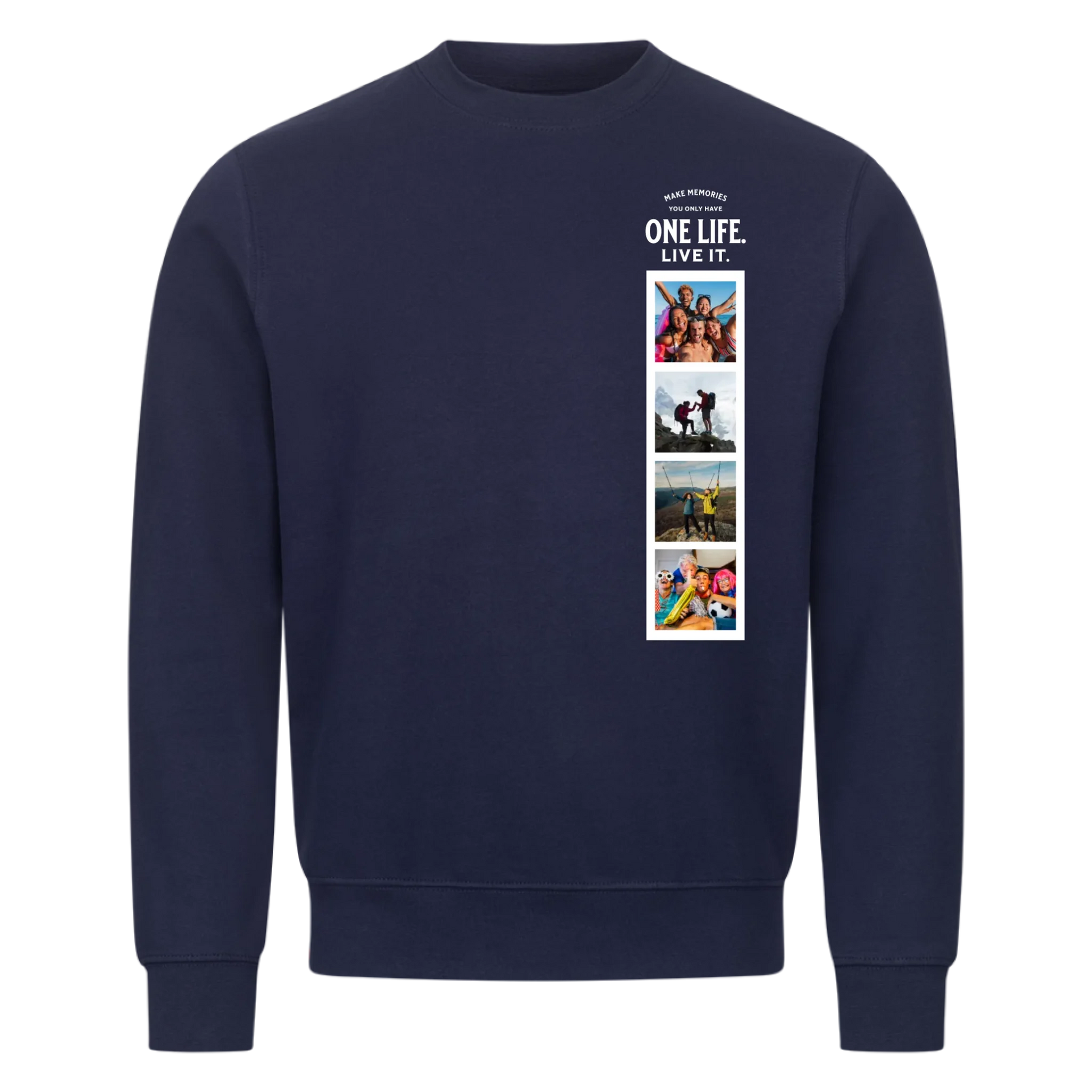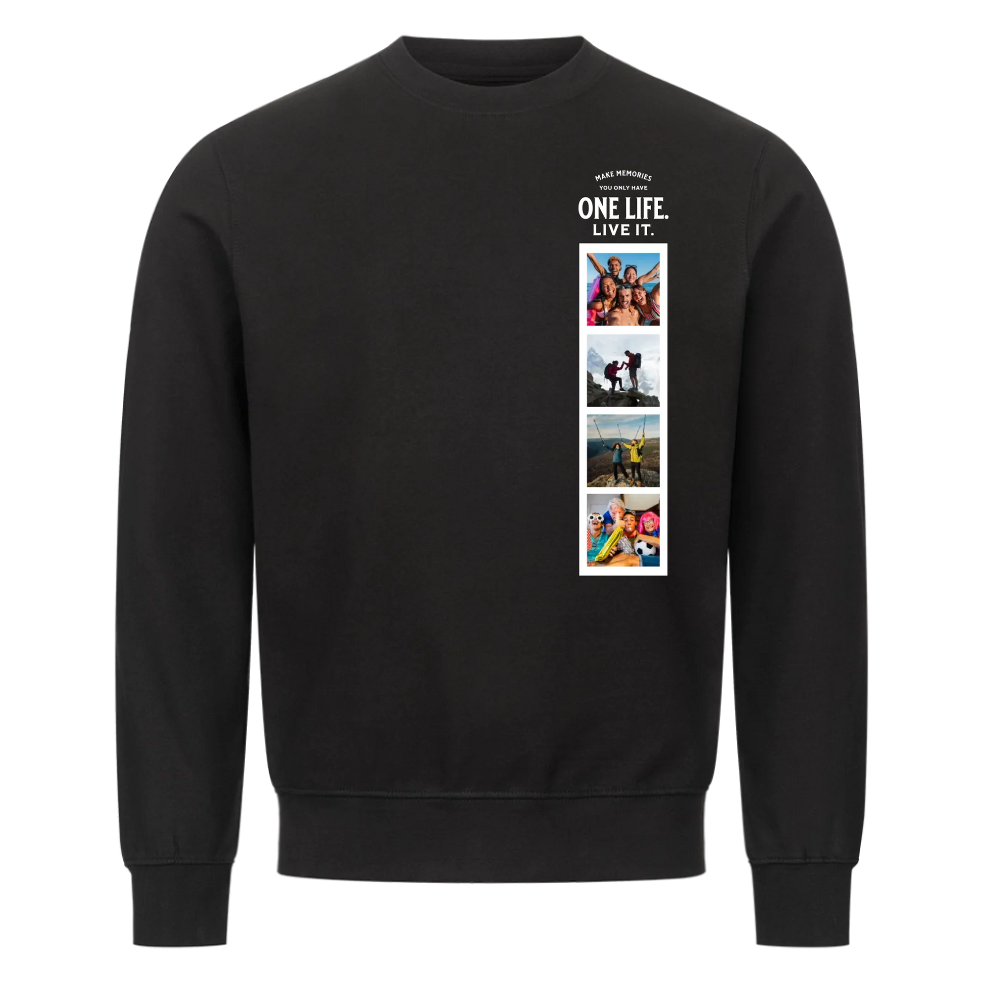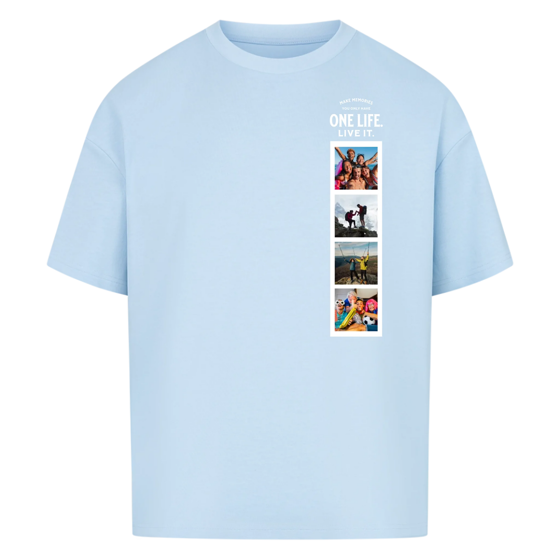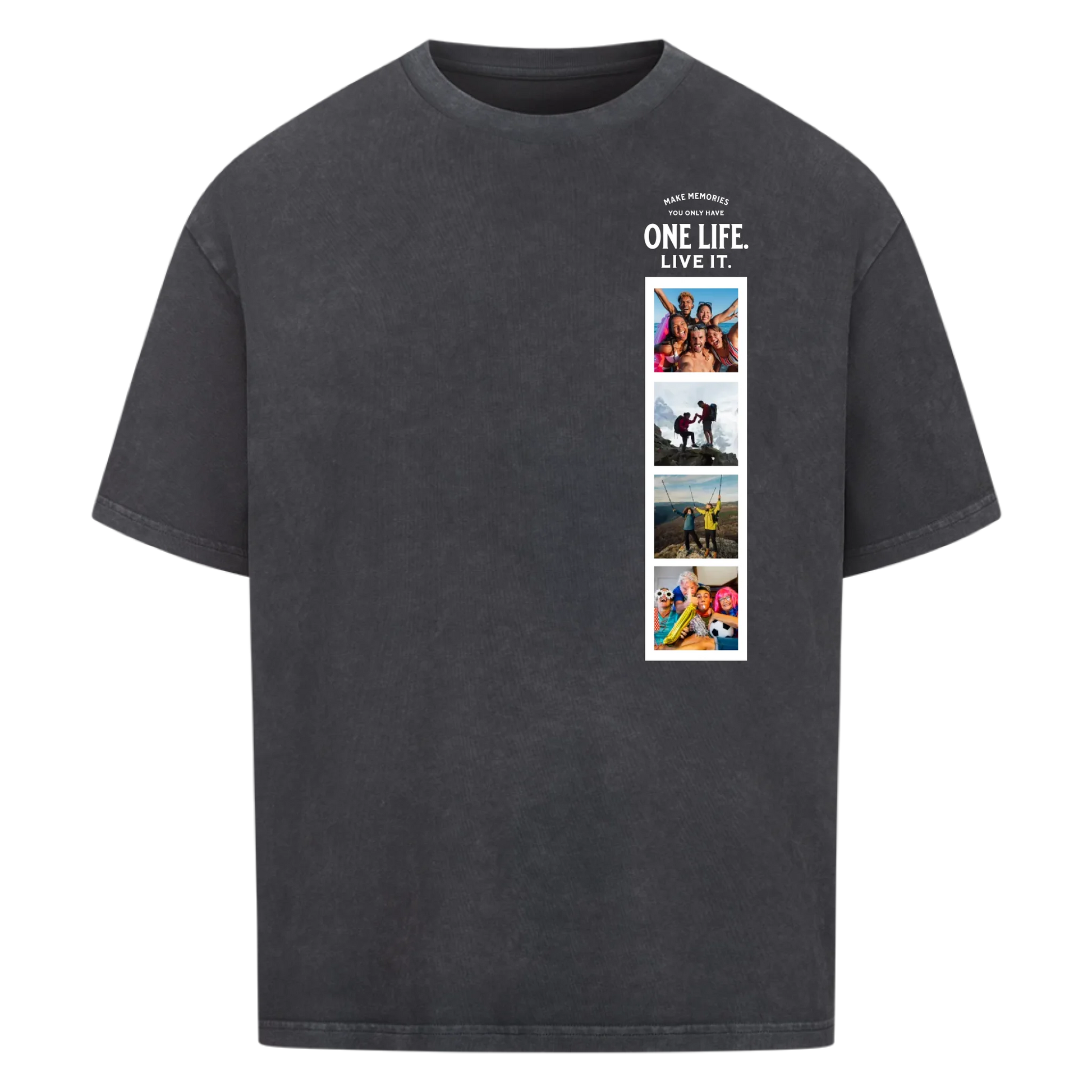 Mit dem personalisierbaren „One Life. Live It.“-T-Shirt trägst du deine schönsten Erinnerungen direkt auf der Brust – im cleanen Filmstreifen-Design.