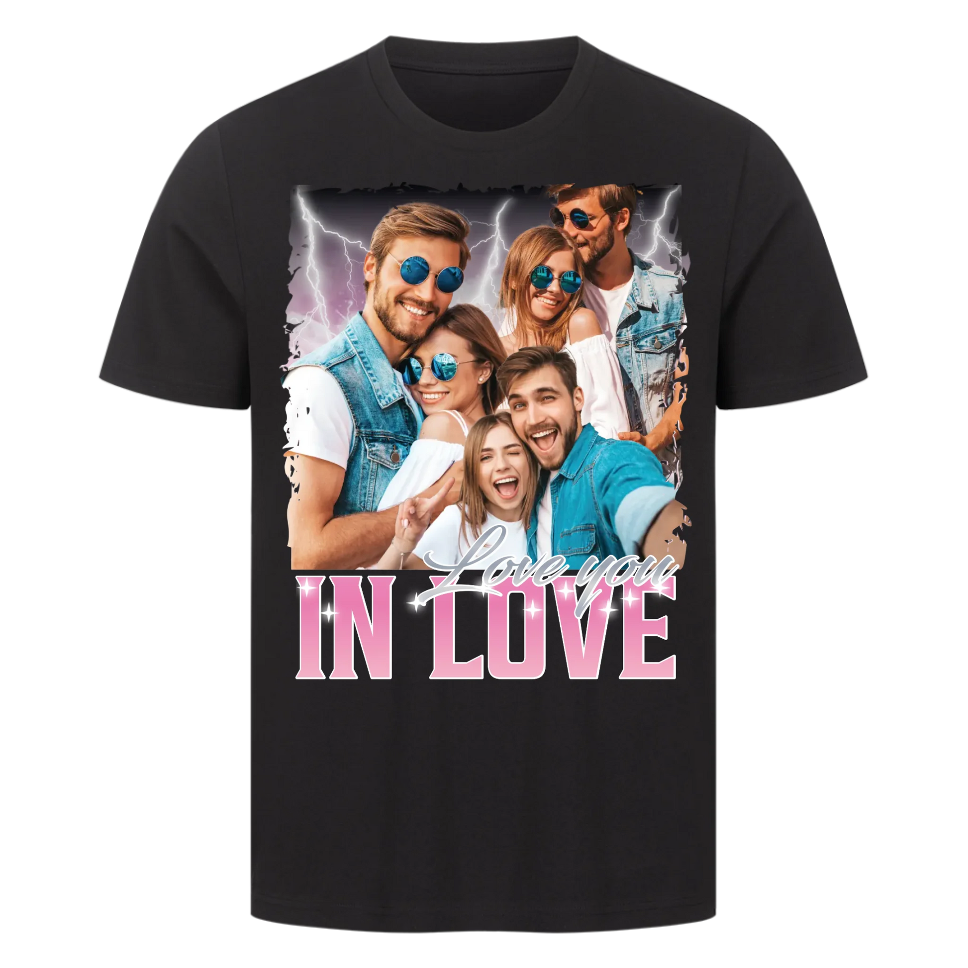 Dieses Design ist eine Hommage an Retro-Tourshirts, Fan-Culture und ikonische Visuals der 90er – personalisiert mit deiner Story: