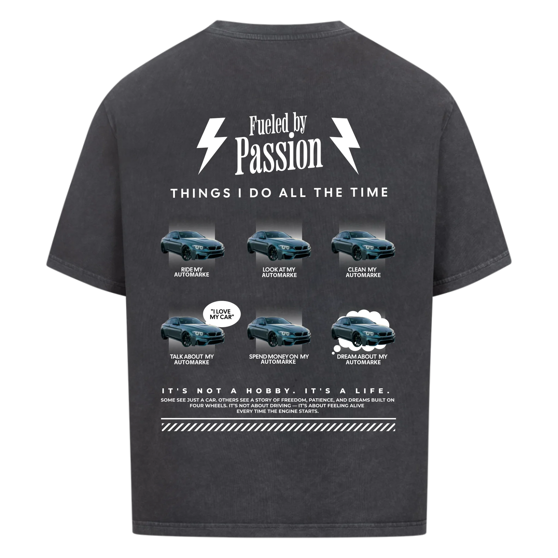 Ob Tuner, Oldtimer-Fan oder Driftfahrer – dieses Design steht für Leidenschaft, Geduld und Stolz auf vier Rädern.