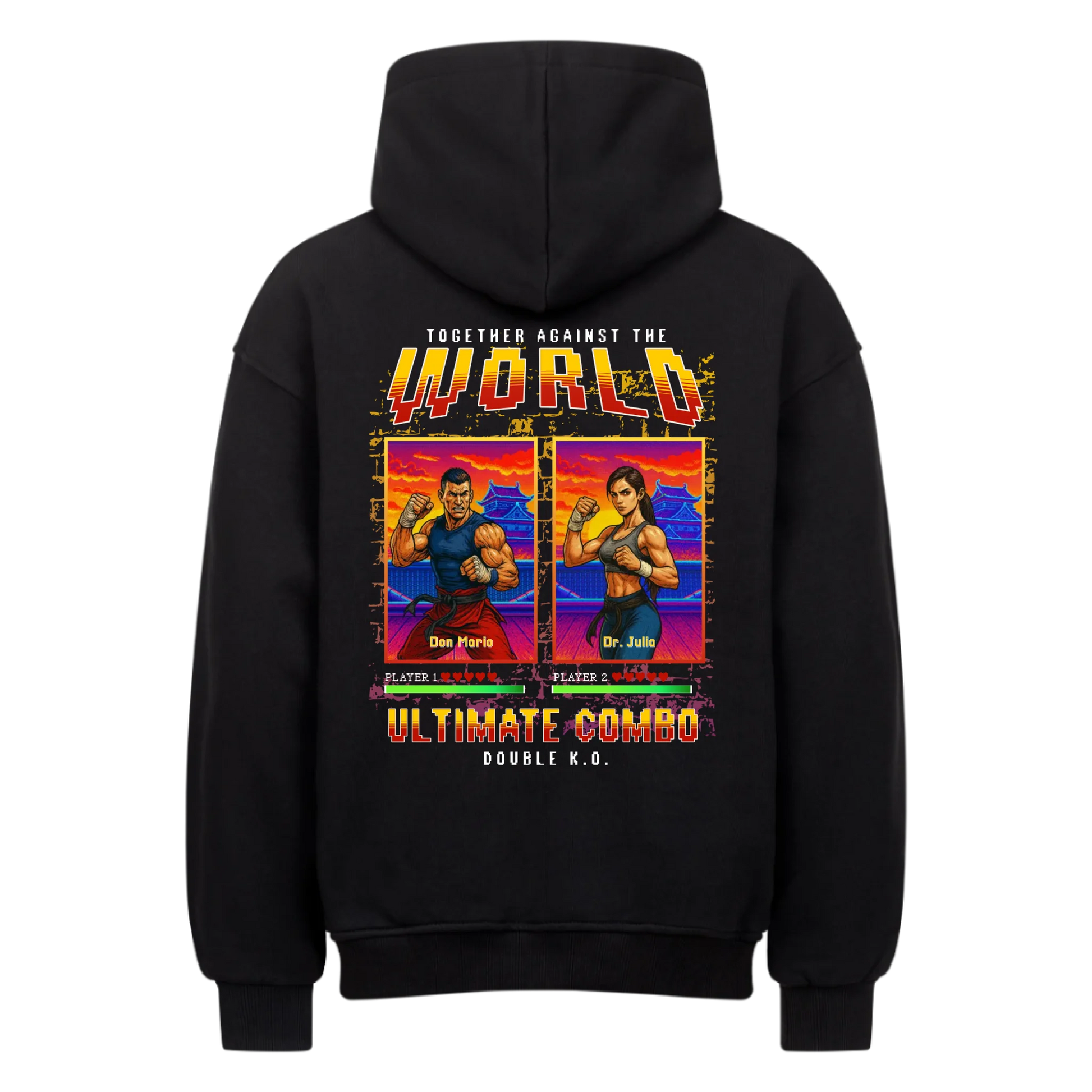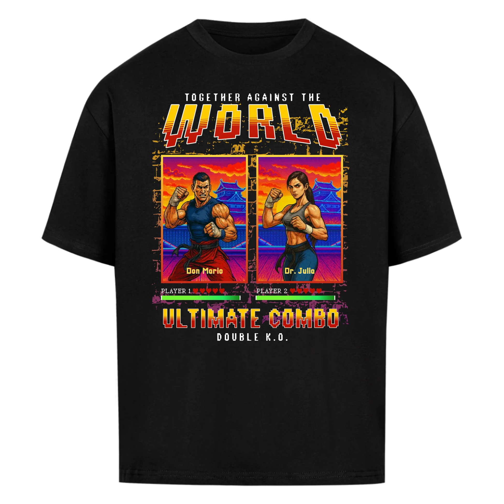 Ob als Regular Fit Shirt, Oversize Shirt oder Oversize Hoodie – das Design ist ein echter Eyecatcher im stylischen 90s Arcade-Fighter-Look.