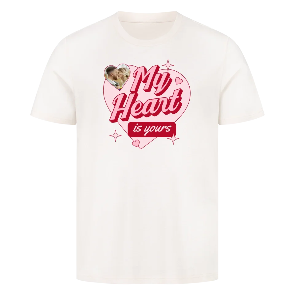 Mach eure Erinnerung tragbar: Mit unserem personalisierbaren "My Heart is yours"-Shirt wird dein Foto zum Herzensgeschenk.
